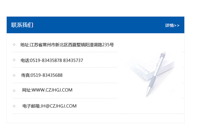地址:常州市新北區友邦商務大廈1幢16、17層  電話:0519-85101652  傳真:0519-85112595  郵編:213022  網址:www.cz-jiayue_cn.ahjccy.com  郵箱:xiajifengaa@163.com